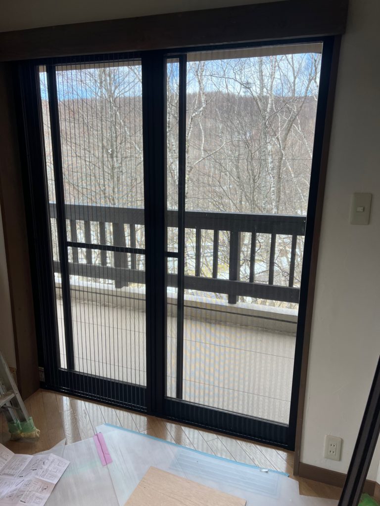 障子の内側にアコーデオン網戸と内窓を取付けました。
