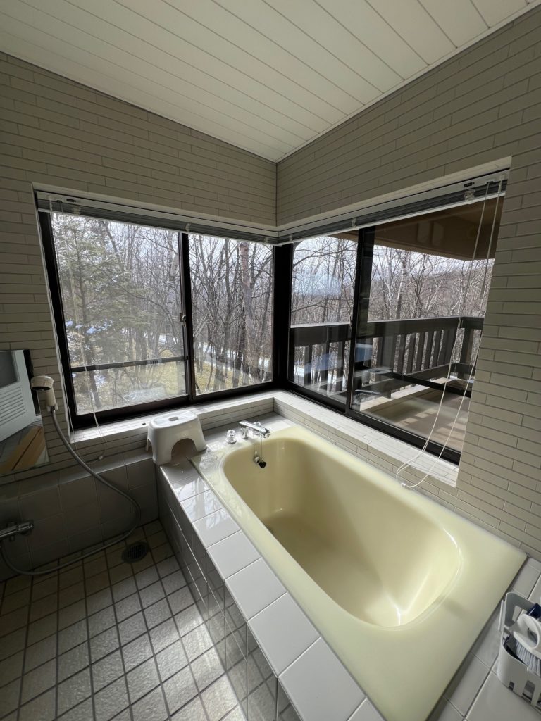 別荘地ということもあり外が見えるよう窓には透明ガラスが入っておりブラインドで目隠しをする仕様でした。