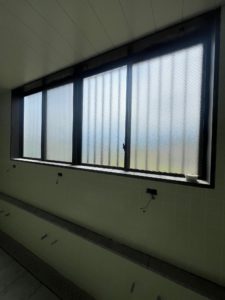 枠取付後、障子を建込み鍵の調整などを完了させて枠廻りのコーキングをして完成になります。