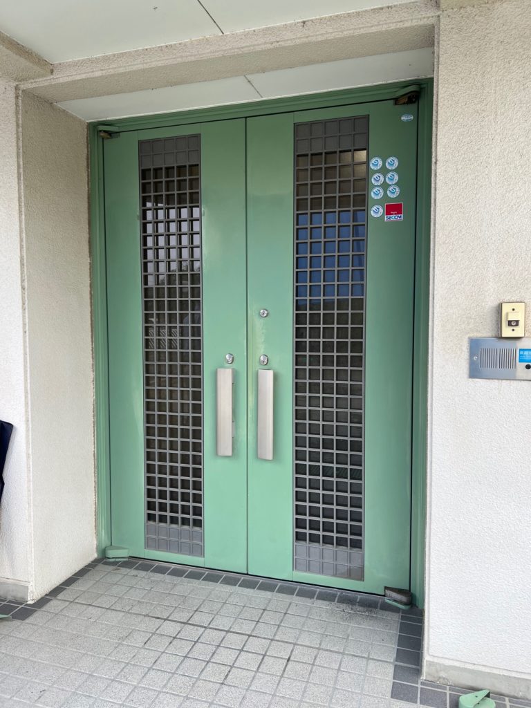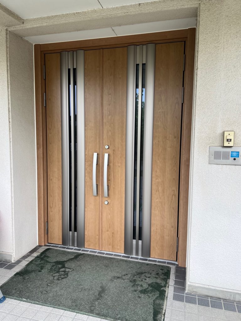 今回は施設の入口の両開きドアをリシェントを使用してカバー工法で改修しました。