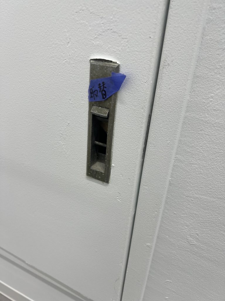 今回は点検口の平面ハンドルを1F~5Fまで5カ所交換しました。